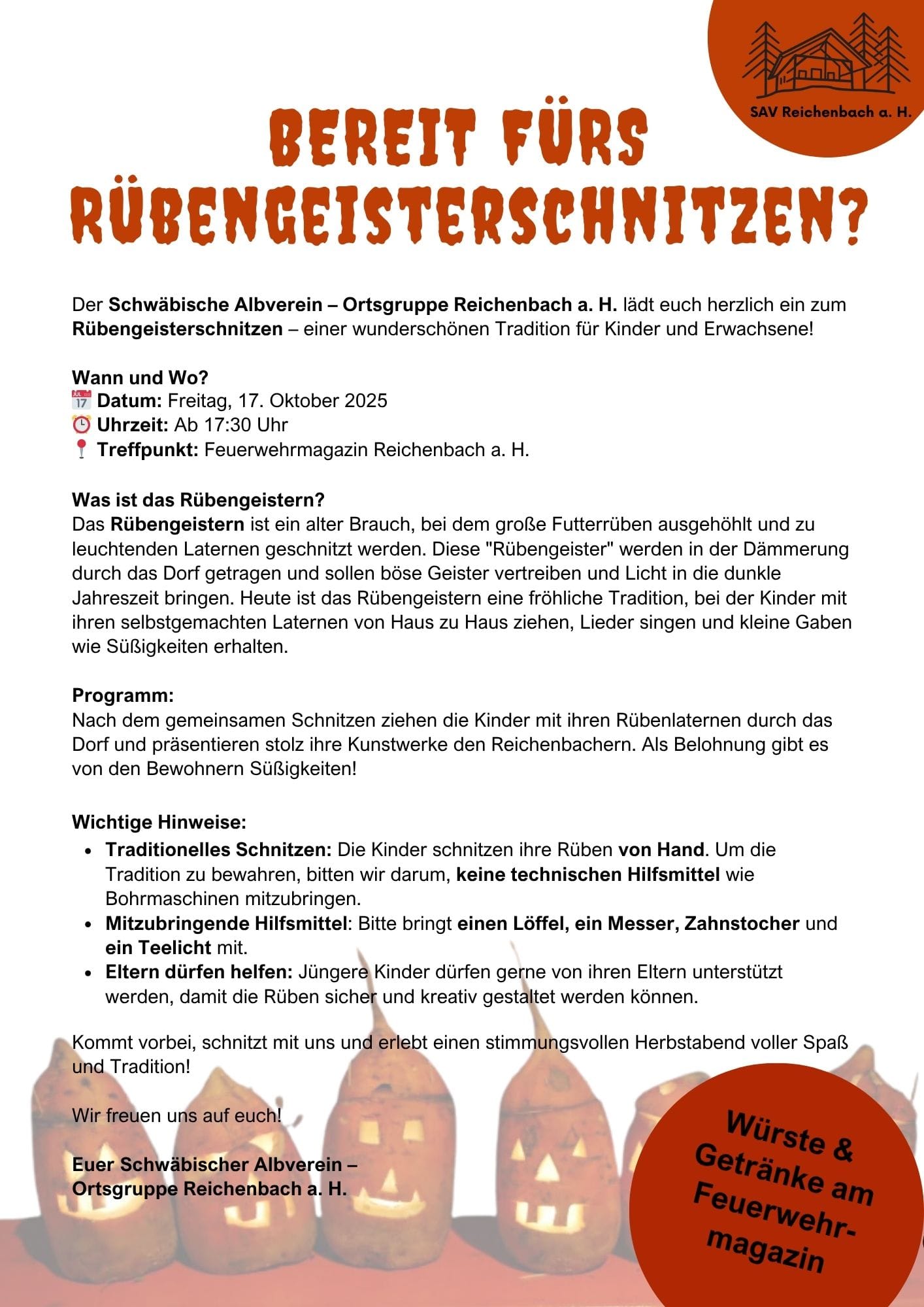 Rübengeisterschnitzen Fr., 17.10.2025, Uhrzeit: 00:00 iCalendar Mit dem Laden der Karte akzeptieren Sie die Datenschutzerklärung von Google.Mehr erfahren Karte laden Google Maps immer entsperren zur Übersicht